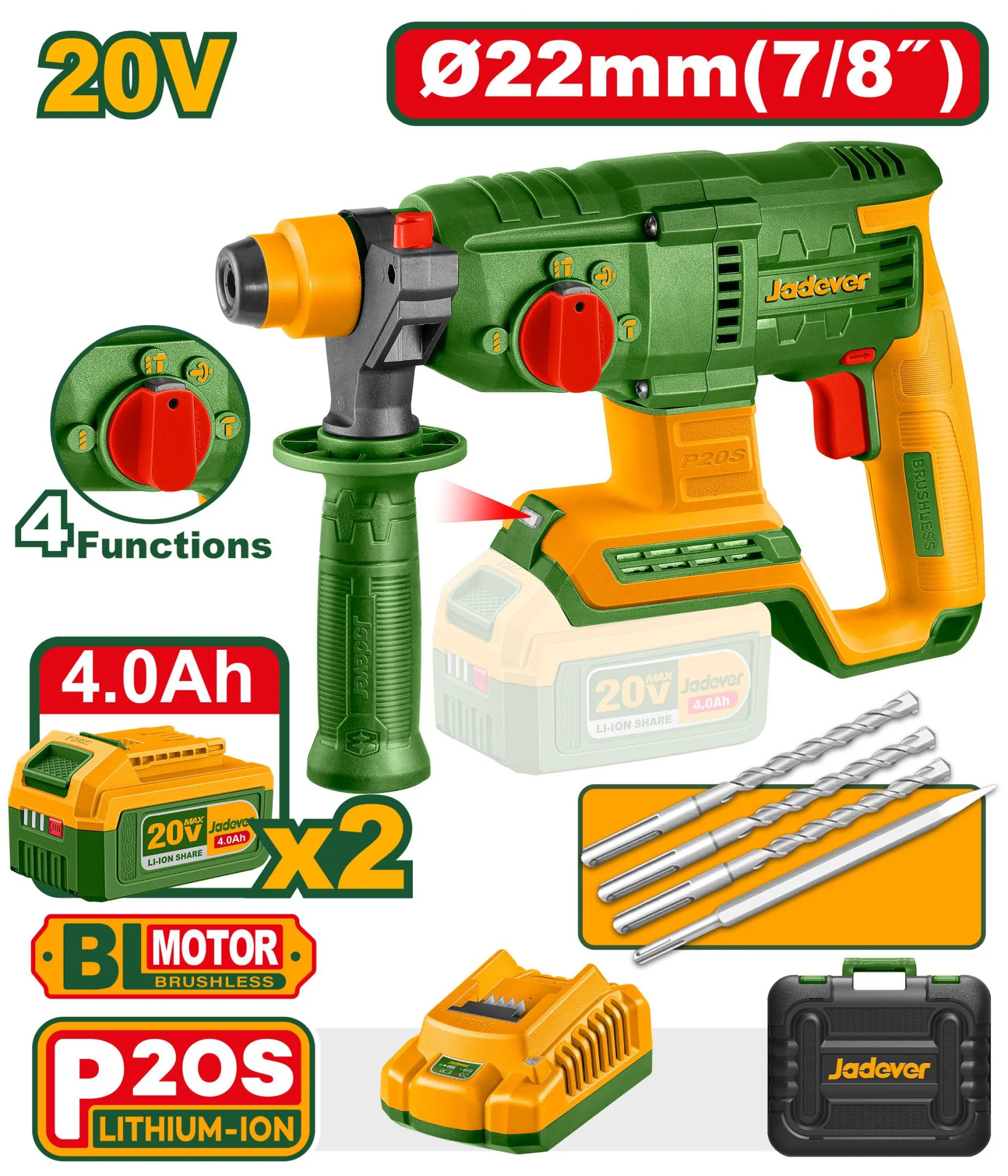 Беспроводной перфоратор 20V + 2 батареи JDLM15225 Jadever