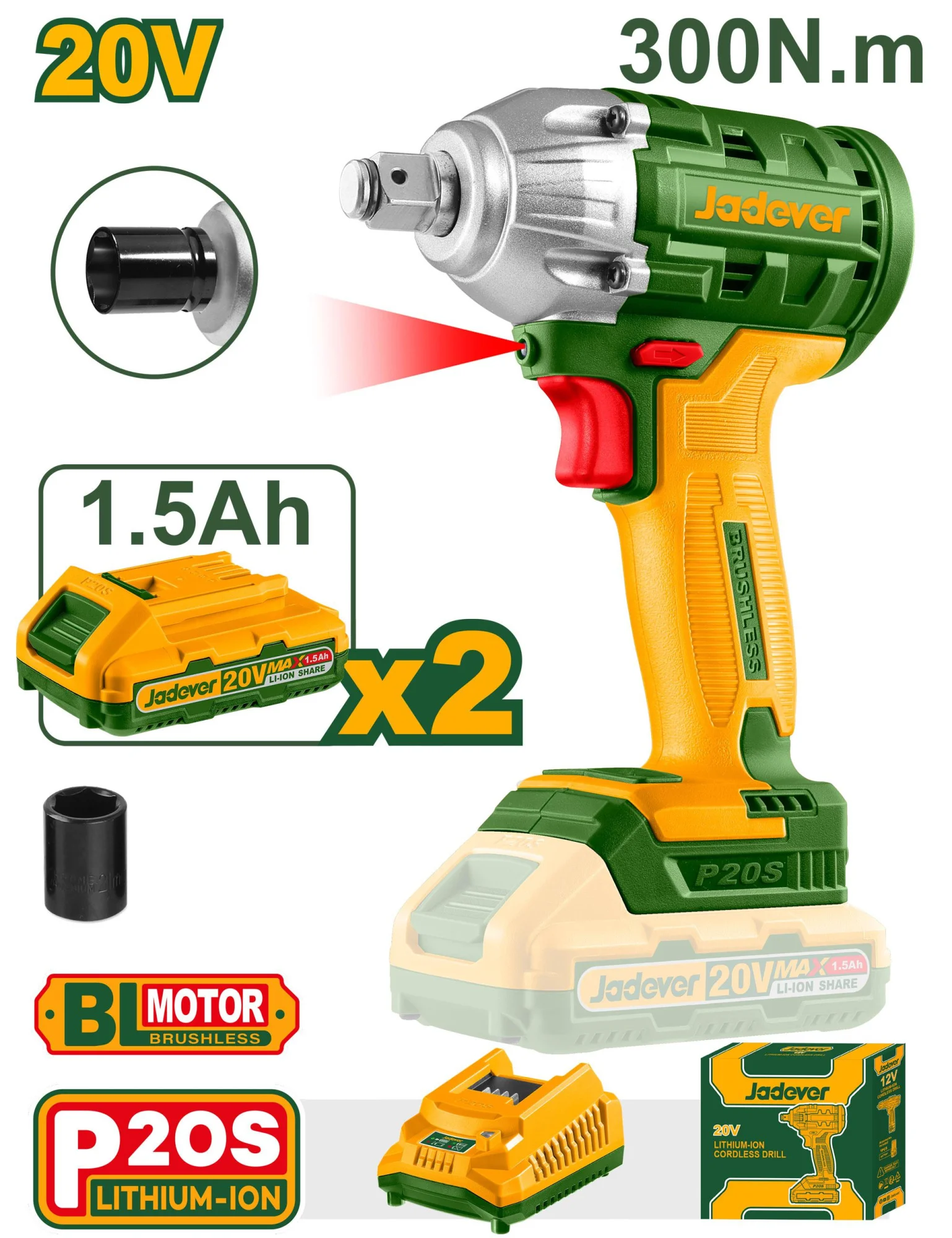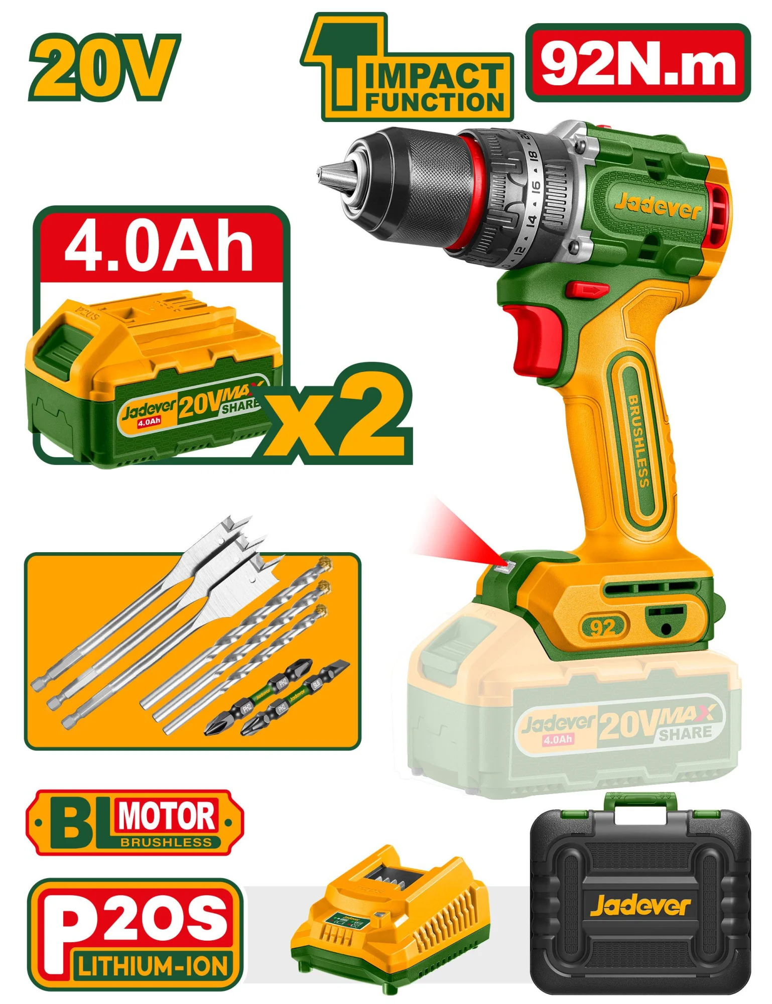 Бесщеточная аккумуляторная ударная дрель 20V JDCDP9281 Jadever