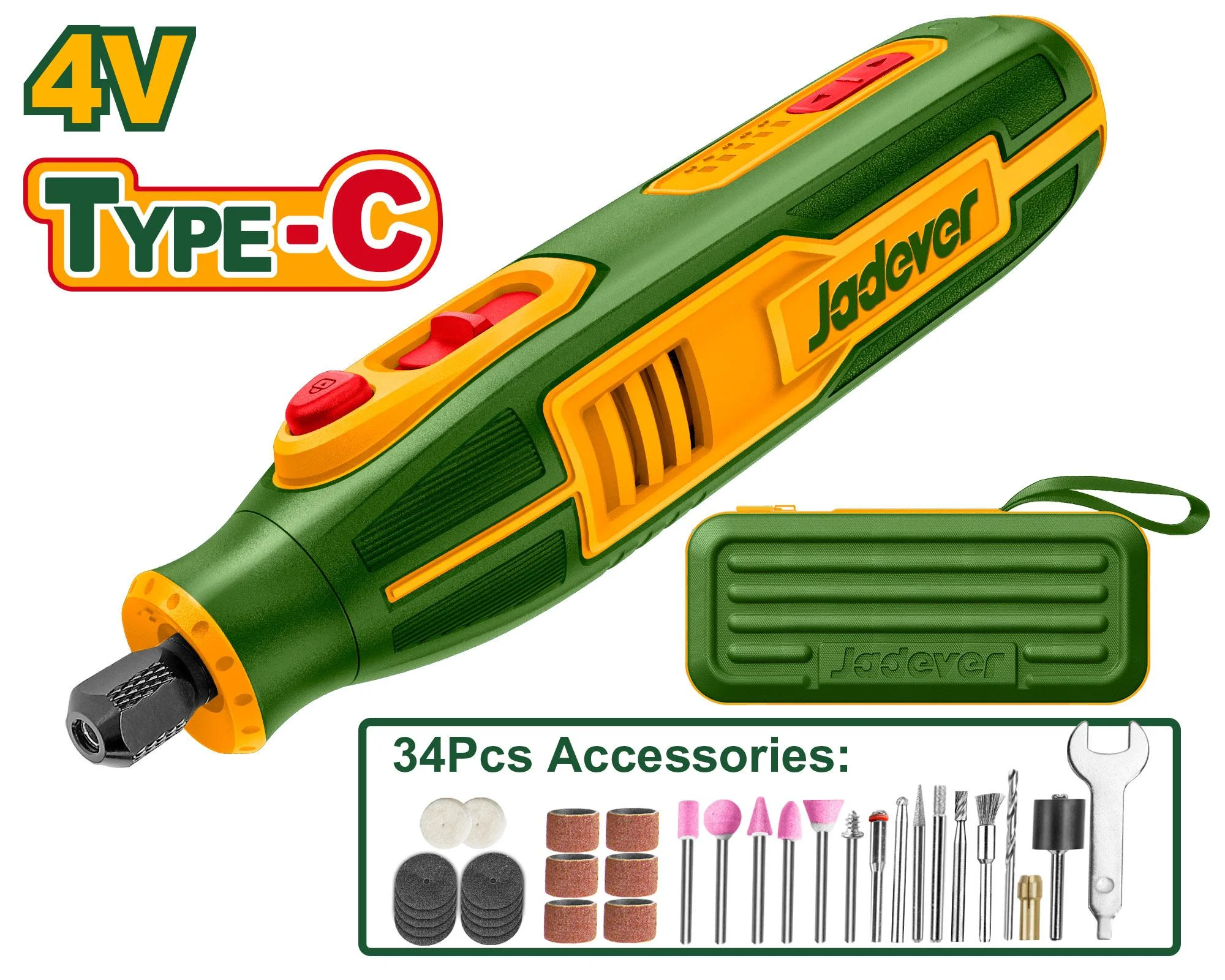 Аккумуляторная шлифовальная машина 4V 5000-2500rpm USB + аксессуары 34шт; JDRYP1504 Jadever