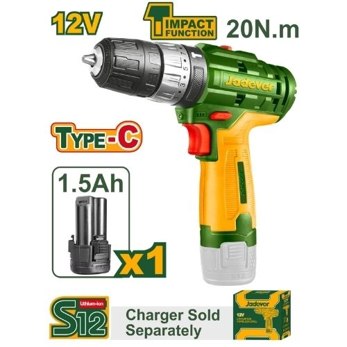 Дрель-шуруповерт беспроводной на аккумуляторе 12V 1500rpm 20Nm JDCDS520 Jadever