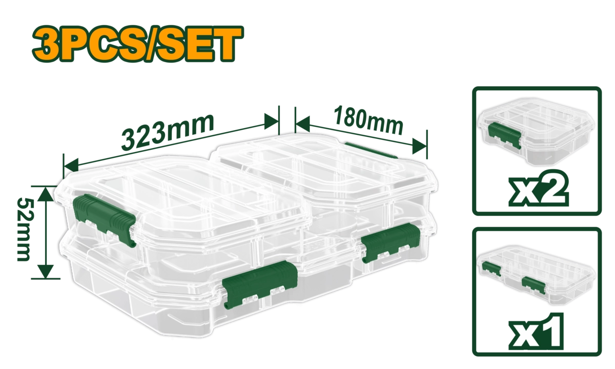 Комплект органайзеров для хранения 2 шт "S" (180*165*50 мм) + 1 шт "L" (320*180*50 мм) JDTB8343 Jadever